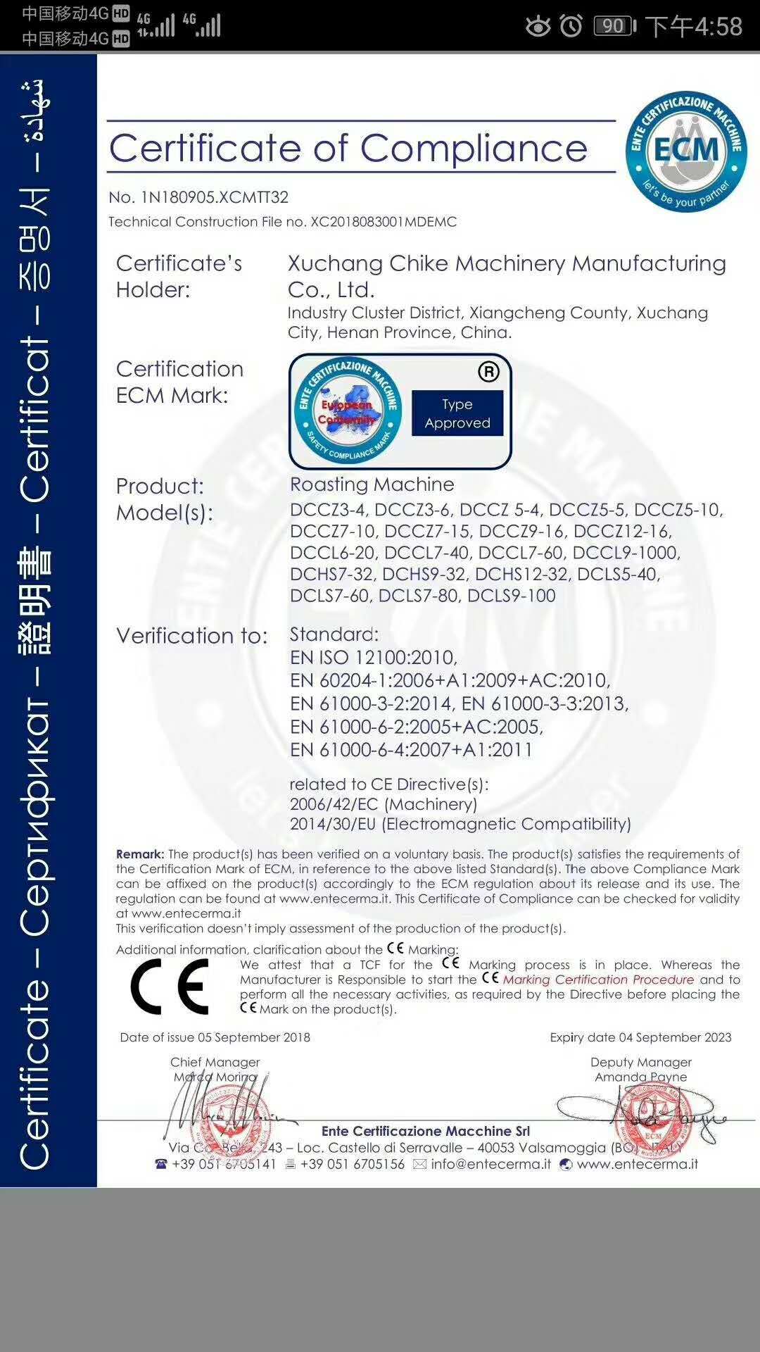許昌智工產(chǎn)品已經(jīng)通過歐盟CE認證,所有產(chǎn)品已經(jīng)通過安全,衛(wèi)生,環(huán)保和消費者保護等一系列歐盟標準要求。