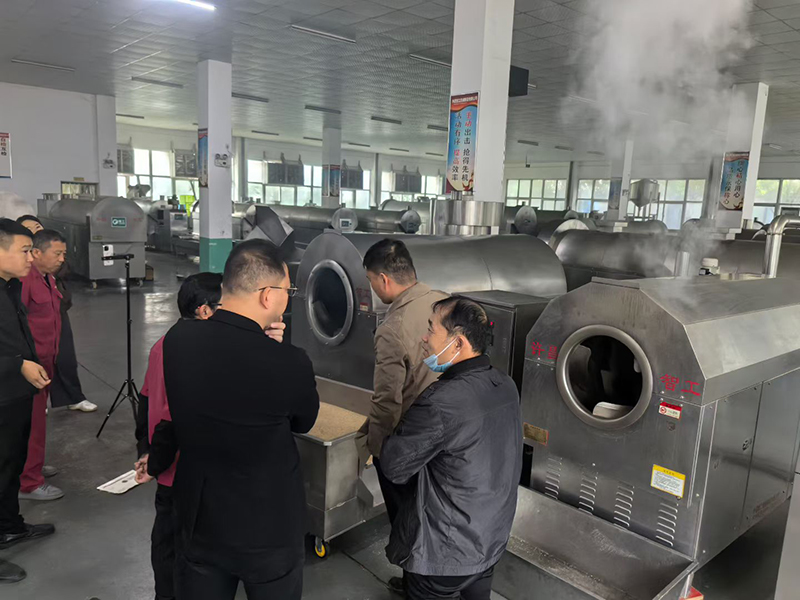 河南平頂山知名芝麻香油廠家來(lái)廠試機(jī)考察200斤芝麻炒鍋